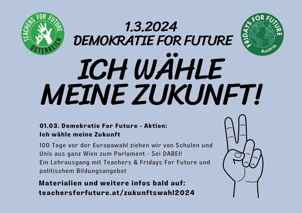 ALLE INFOS findest du bei den Teachers HIER: https://teachersforfuture.at/unterricht/zukunftswahl2024