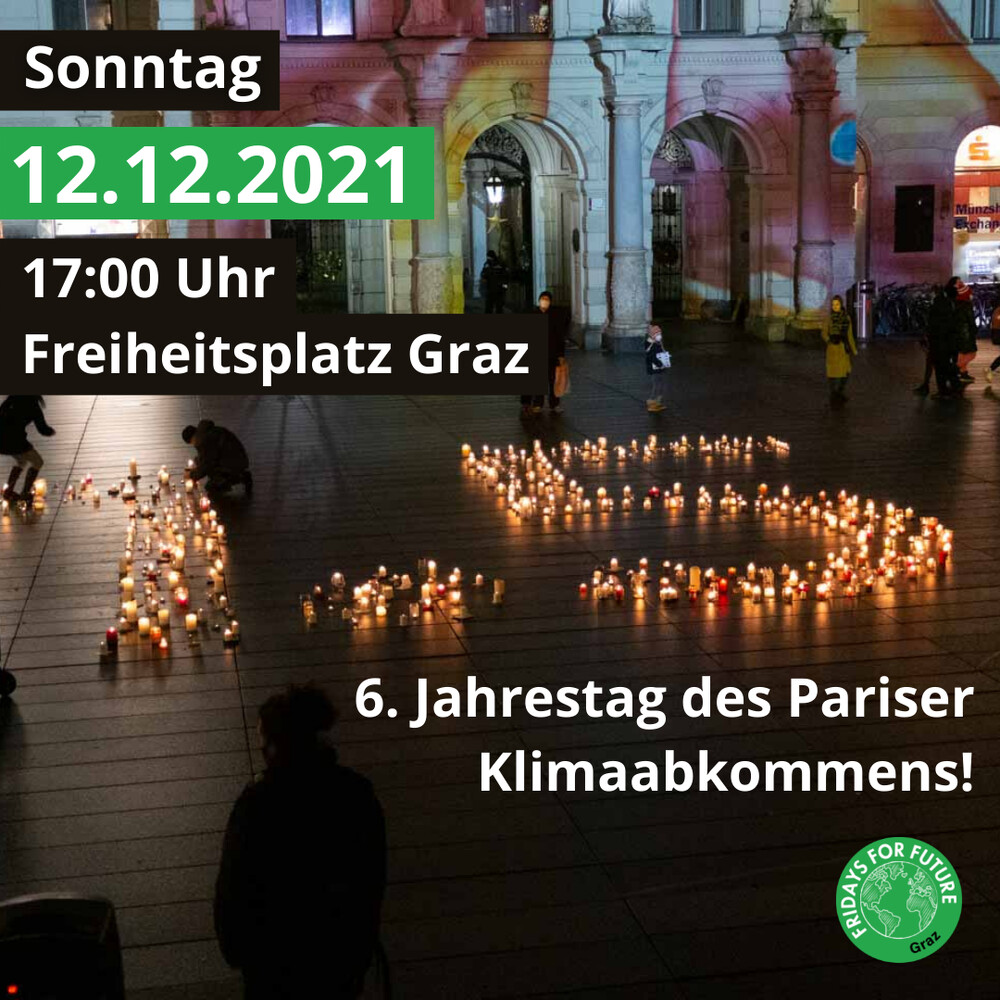 Wir werden am Ende dieser Woche die Einhaltung des Pariser Klimaabkommens einfordern. Sei dabei, bring Kerze, Maske und Lockdownbuddys mit! Wir freuen uns auf dich!