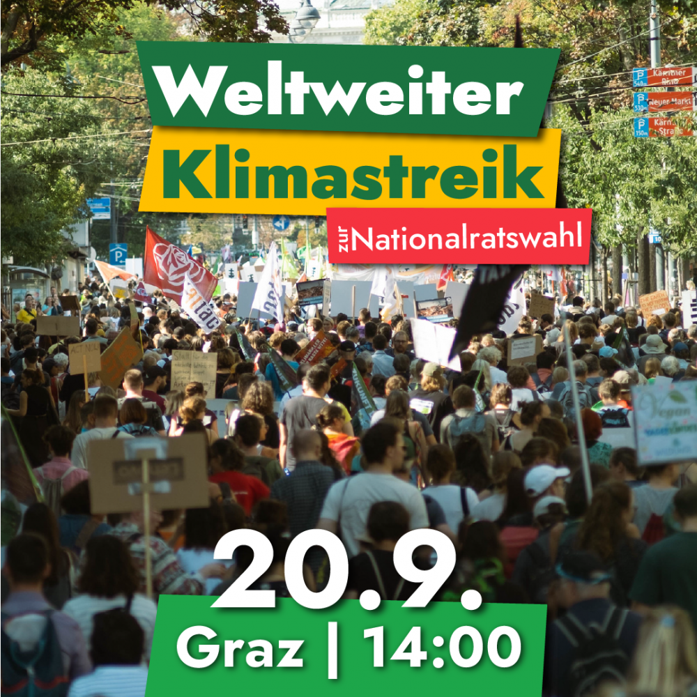 Am 20. September, neun Tage vor der Nationalratswahl, gehen wir in Graz wieder für Klimagerechtigkeit auf die Straße! Denn die Klimakrise ist längst hier: In den Sommermonaten haben Unwetter ganze Landschaften verwüstet, Felder überflutet und Existenzen zerstört. Die immer häufiger und immer schlimmer ausfallenden Hitzewellen beeinträchtigen unsere Lebensqualität und kosten heute bereits tausenden Menschen das Leben.