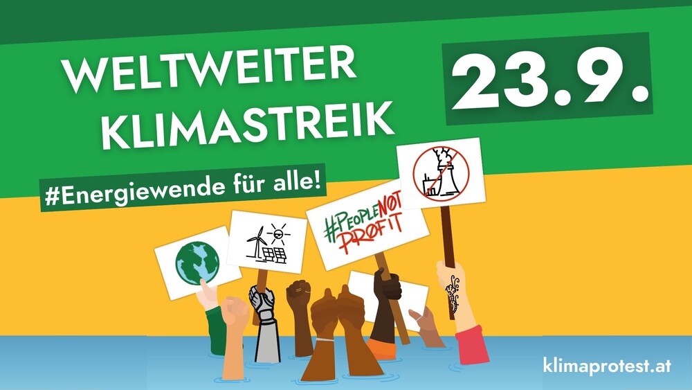 Komm mit uns am 23.09. auf die Straße, denn wir brauchen jetzt leistbare Energien für alle! Für eine soziale Bewältigung der Klima- und Energiekrise!