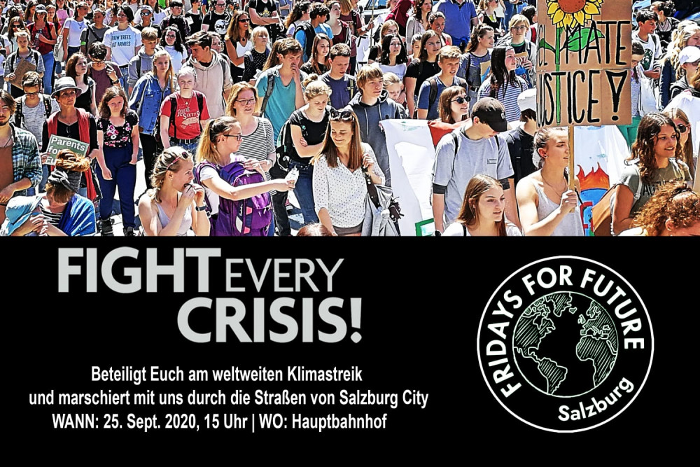 Unseren 6. globalen Klimastreik starten wir um 15:00 am Hauptbahnhof, unsere Abschlusskundgebung findet am Max-Reinhardt-Platz statt.