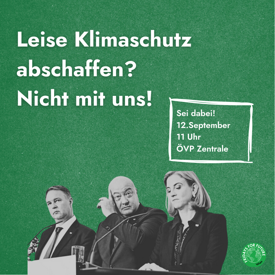 Wir sehen uns am Freitag vor der ÖVP Zentrale, denn wir lassen nicht zu, dass die ÖVP weiter unser Klima killt!!🔥💚