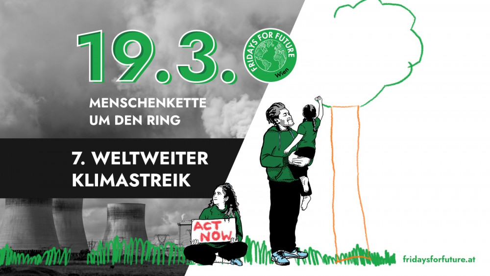In einer corona-konformen* Menschenkette rund um die Ringstraße werden wir ÖVP und Grüne an ihre geteilte Verantwortung für Klimagerechtigkeit erinnern. Die Menschenkette wird mit bunten Bannern und Schnüren verbunden. Zusätzlich gibt es Musik, Kunstaktionen und Redebeiträge!
